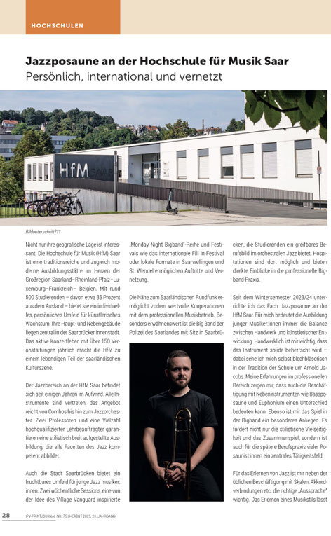 Jazzposaune an der Hochschule für Musik Saar – Persönlich, international und vernetzt